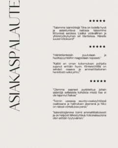 Osakkaalle – Asukkaalle – Taloyhtiölle – Tilintarkastajalle