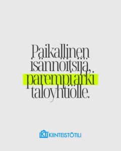 #aidostipaikallinen #kotimaistaisännöintiä #isännöitsijä #tilitoimisto #iisalmi #kiuruvesi #kauppalehtimenestyjät #annameidänhuolehtiaarvokkaimmastaomaisuudestasi #kiinteistötilintiimi #parhaattyypit